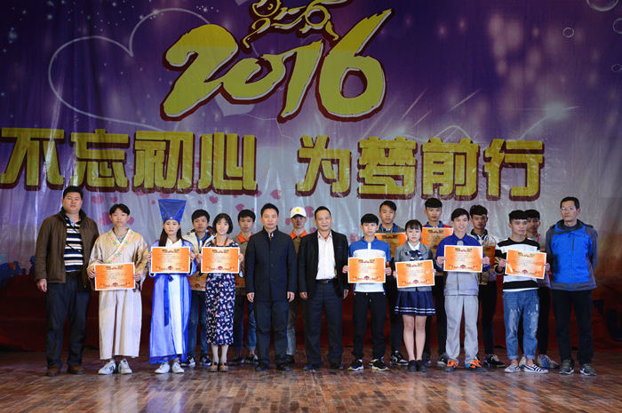 1215日晚,我院第十三届校园文化艺术节学生弟子规朗诵比赛决赛在学院大礼堂举行。学院院长助理樊海林,学生工作处主任梁源、副主任毛华剑、副主任梁勇等到场观看比赛并为获奖班级颁奖。