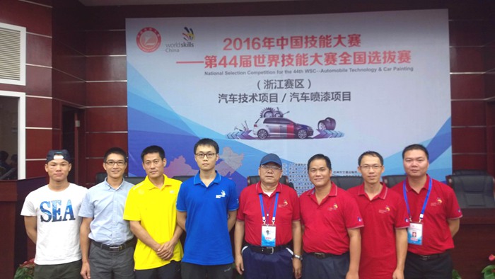 我院共参加了第46届世界技能大赛国家选拔赛的汽车涂装、车身修复、汽车技术等三个项目的决赛。8月10日我院参加了在上海的车身修复决赛,9月12日-14日,我院长选手参加了汽车技术、汽车涂装两个项目的比赛。汽车技术项目参照世界技能大赛的技术要求,选取发动机管理系统、电子电器系统、转向悬架和制动系统和发动机机械维修4个典型考核模板,每个模块限时2小时,考核选手对汽车机械、电气、电子系统以及各系统集成知识的掌握、准确诊断故障并完成维修工作的能力。汽车喷漆项目则设置水性漆调色(限时2.5小时)、色觉测试(限时10分钟)和凹陷损伤修复(限时2.5小时)三个模块,包括个人防护、损伤修复、水性银粉色漆整喷、清漆喷涂、水性漆调色等内容,总限时5小时10分钟,考核参赛选手汽车在喷漆方面的技能水平以及对于汽车修补漆标准的掌握程度。看似简单的比赛内容,蕴含着许多大学问。以水性漆调色为例,选手需要使用洋红、通透白等5种颜色调出红色素色漆,用中山银、暗黑等8种颜色调出蓝色银粉漆,每种水性漆只有5次调色机会。比赛共吸引了来自全国22个省、自治区、直辖市及新疆生产建设兵团共23支代表队的44名选手及2名俄罗斯参赛选手参赛。高水平的技能比拼让大赛亮点纷呈,堪称一场技能精英的盛会。