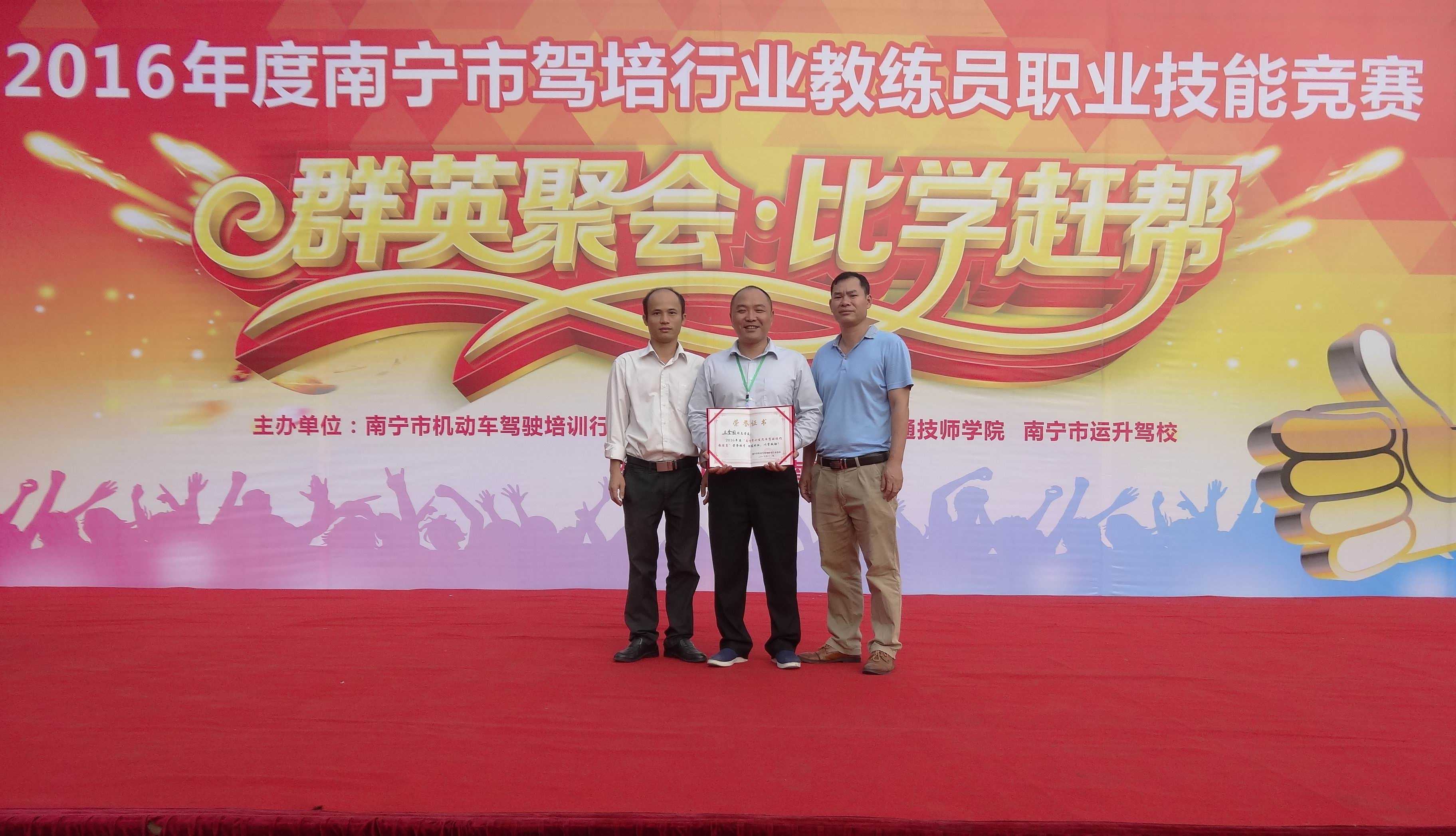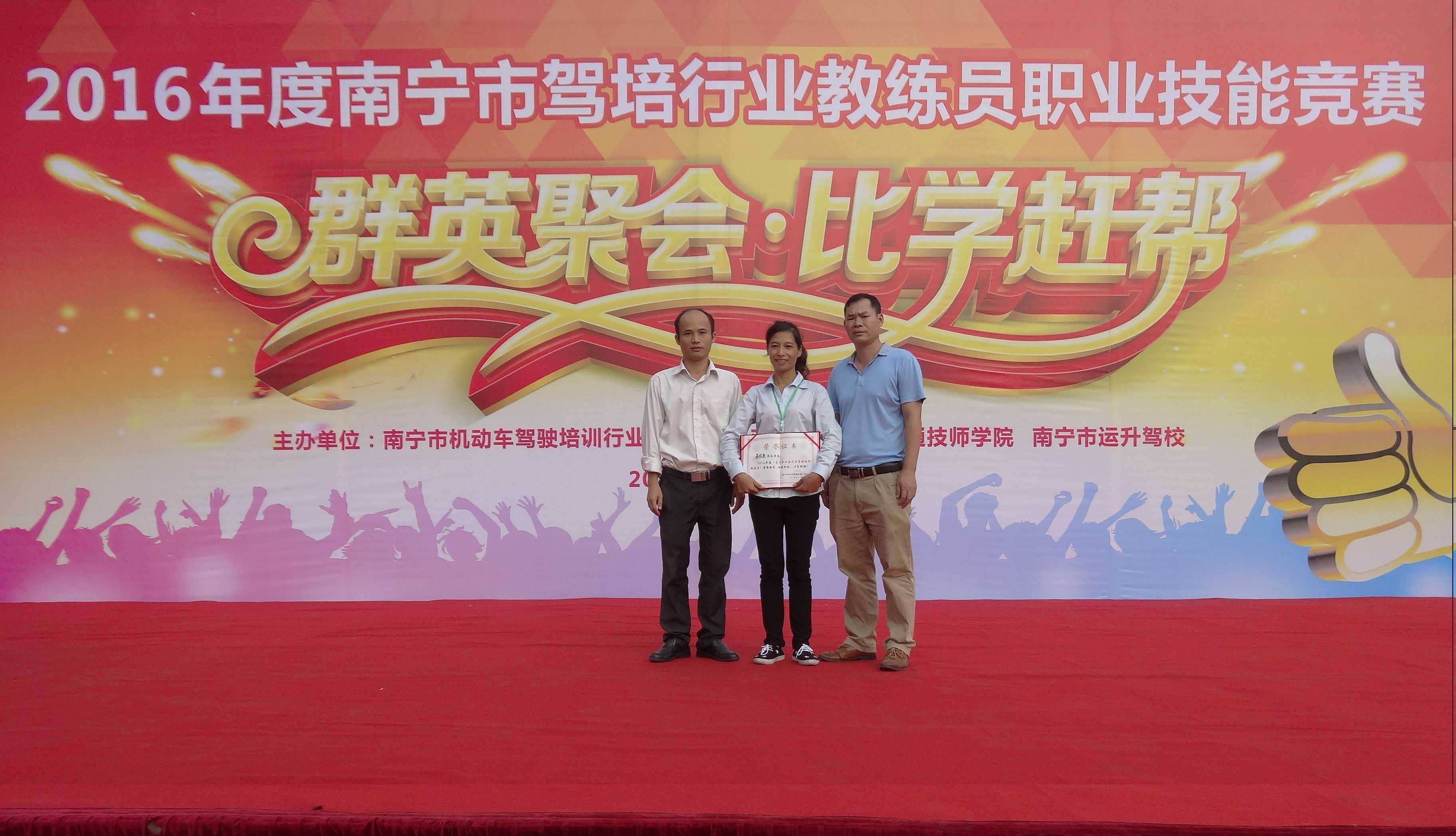 经过紧张激烈的比赛,我院院属驾校—南宁市运升驾校的教练员王金国经过努力拼搏荣获第一名,武鸣县运升驾校教练员苏存英荣获第二名,这也是我校在该赛亊的二连冠。