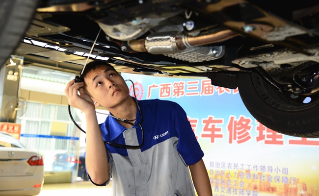 马才文,1996年出生在广西南宁,现就读于广西交通技师学院16北京现代班。汽修是马才文从小追逐的梦想,他渴望日后能成为一名汽修“大匠”。