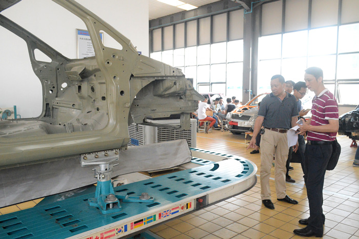 来访人员参观汽车钣金实训设备