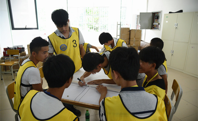 体验课活动从9月19日上午开始,42名学生随机分为4个小队,以小团队配合的形式进行体验课活动。期间,他们参加了“桃花朵朵开”、“安全标识学习”、“三圈理论”、“头脑风暴”、“我是镇长”、“小镇灾后重建”、“安全事故案例分析”、“KYT”、“电脑拆装训练”、“信息接龙”、“超级过山车”等多个生动有趣的素质拓展项目。在紧张激烈的体验训练中,所有同学都以饱满的精神状态投入到各项活动中,积极面对挑战,在趣味横生、生动活泼的游戏氛围中,学习沟通协调、团队合作,用行动诠释了不畏困难、敢于拼搏的精神意志。