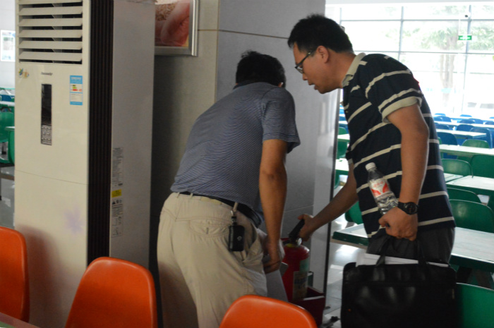 各位领导亲临现场,检查灭火器等消防安全设备设施完好情况,随后召开工作会议,对我院消防安全工作落实情况进行总结。
