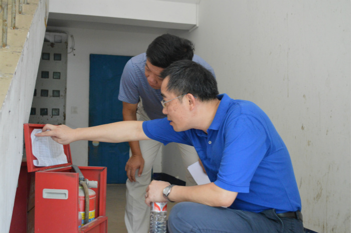 7月28日上午,自治区道路运输管理局根据《学校、福利机构、医院、劳动密集型企业等场所防盗网、临时板房消防安全专项整治“回头看”工作方案》要求,开展对我院的消防安全专项整治活动进行检查。由运管局党委副书记蒙青山、总会计师龙长骅、办公室副主任陈军、安全科副科长刘建立、安全委员会办公室黄里锋成立的消防安全督察组对我院教学场地,学生宿舍,学生食堂,在建综合大楼等地进行了消防安全检查。