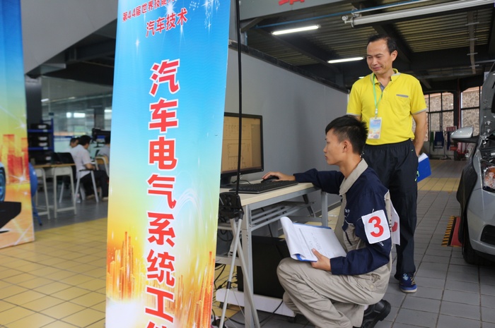 该项比赛由广西壮族自治区人力资源和社会保障厅主办,我院承办。本次比赛共有来自全区的各技工院校5个代表队进入最后决赛。本次大赛的标准和流程与世界技能大赛接轨,采用个人技能操作竞赛形式。竞赛项目有4个模块,包括发动机管理系统、制动和悬架系统、汽车电气系统以及发动机机械。选手依次独立完成4个实操模块。每个实操模块的比赛时间为2小时。
