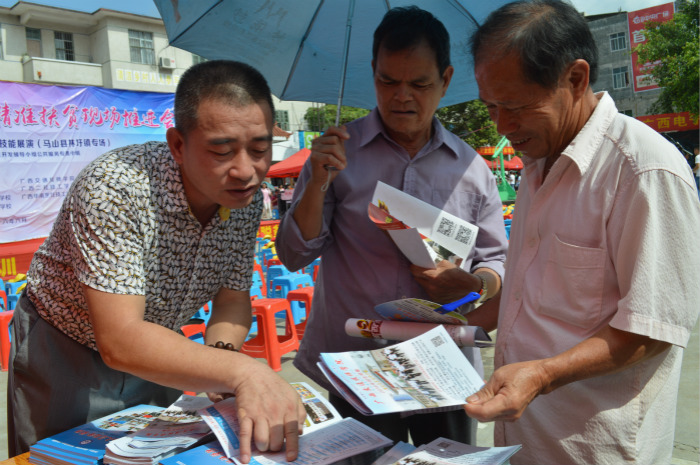招生就业处主任杨波为村民介绍我院特色专业