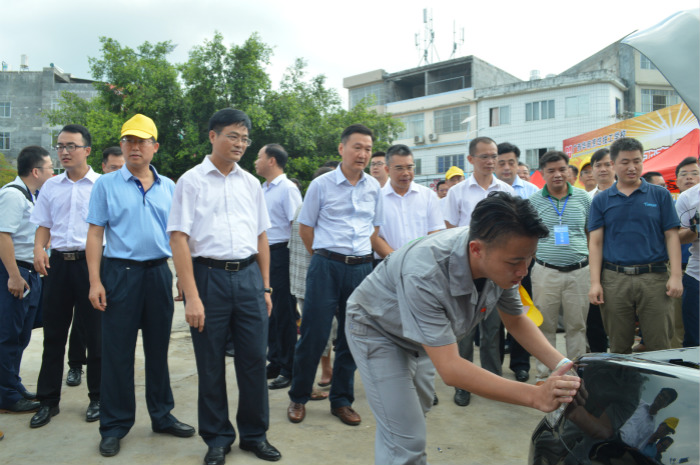 领导们参观我院学生汽修展演