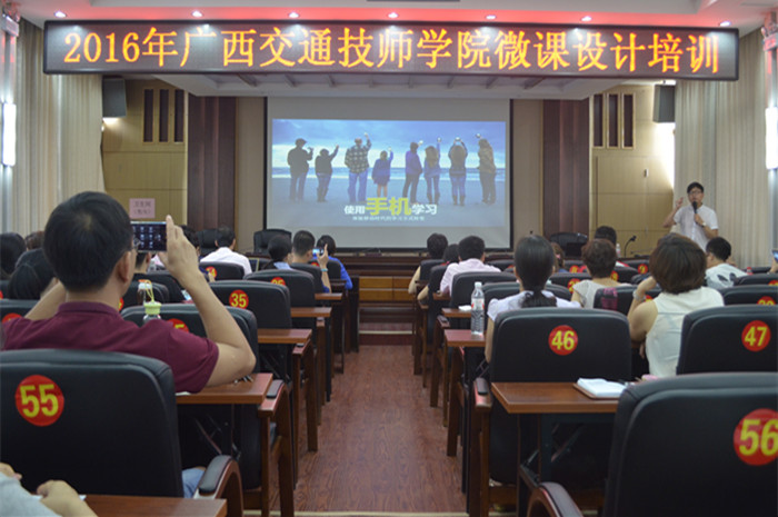 为不断提高我院教师教育技术应用能力和信息化水平,促进信息技术在教育教学中的广泛应用,6月14-15日,由我院教务与科研处协同信息与商务系组织的2016年广西交通技师学院微课设计培训在信息中心四楼会议室举行,广西技工教育研究室副调研员曾文、我院院长助理郑超文出席了培训会。此次培训由北京超星数图信息技术有限公司课程服务研究院副院长钱会博主讲,我院汽车系、信息与商务系及长岗校区共54名教师参加培训。