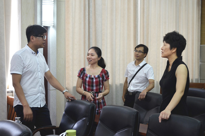 曾文副调研员一行与钱副院长(左一)及郑助理(右一)讨论微课设计相关问题