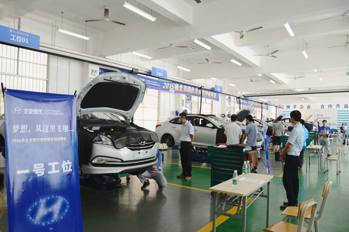 此次考核分为理论和实操两大部分,考试环节紧凑,考核严格,对该校企合作项目的学生进行全面、系统的检测。最终,两个班级的学生全部通过考核,24名北京现代班和16名北京现代营销班的学生分别获得了由北京现代汽车有限公司颁发的初级机电技师资质证书和服务顾问资质证书。