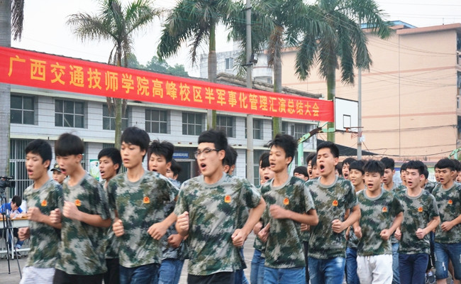 接着,领导们观看了15级学生的队列汇演比赛。各班同学都激情澎湃的向全校师生展示他们一个多月的努力训练成果。经过2个小时精彩的汇演,评审团的公正打分,最后,有7个班级获得“作风过硬连”称号。