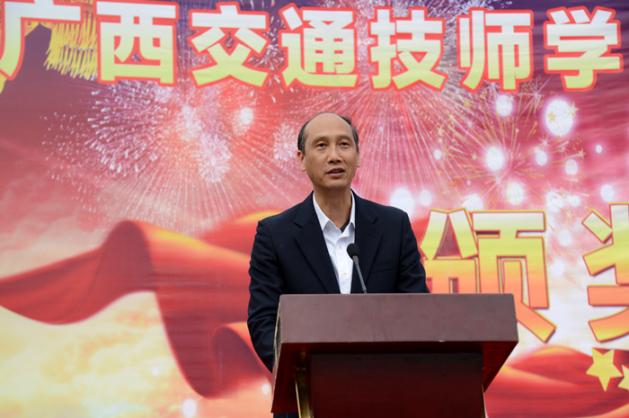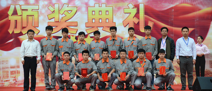 关菲明副院长为颁奖仪式致辞,他首先对取得优异成绩的同学们表示热烈的祝贺,并向为此次竞赛辛勤工作的老师和工作人员表示衷心感谢。关副院长表示,中国代表团在第43届世界技能大赛上取得的优异成绩,在国内掀起了一股学习技能的热潮。我院历来重视对学生操作技能的学习和培养,近年来通过加大教学设备的投入,进行一体化教学改革,加强校企合作,推进工学结合,强化技能培养,增强实践能力,收到良好的效果。2015年我院师生参加技能比赛取得了丰硕的成绩,获得省级、国家级各类奖项58项,其中一等奖24项,二等奖15项。2015年12月在我院举行的全区技工院校汽车维修技能比赛中,学院宋庆营和王磊老师分别获得第一和第四名,王益和郁善明同学分别获得第一和第二名的优异成绩。