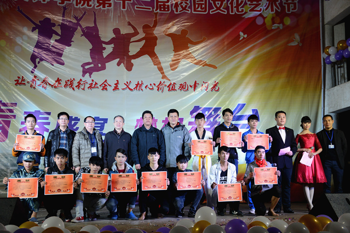 12月29日晚,我院高峰校区在校区体育馆举办第十二届校园文化艺术节学生曲艺小品综合比赛决赛暨元旦晚会。院长钟修仁、副院长关菲明 党委副书记张健生,院长助理谭劲涛以及相关中层领导等出席,并为获奖班级颁奖。