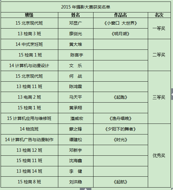 2015年11月,我院开展了“让青春在践行社会主义核心价值观中闪光”学生书画摄影比赛并进行展出。比赛在全院进行,共收得学生书法作品118幅,绘画作品128幅,摄影作品140幅;并分别评比出了书法比赛一等奖两名,二等奖三名,三等奖五名,优秀奖五名。绘画比赛一等奖两名,二等奖三名,三等级五名,优秀奖五名。摄影比赛一等奖两名,二等奖三名,三等奖五名,优秀奖六名。
