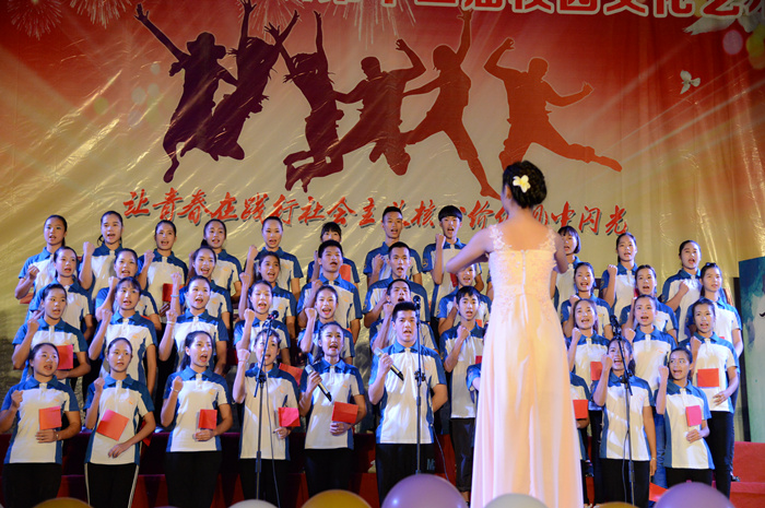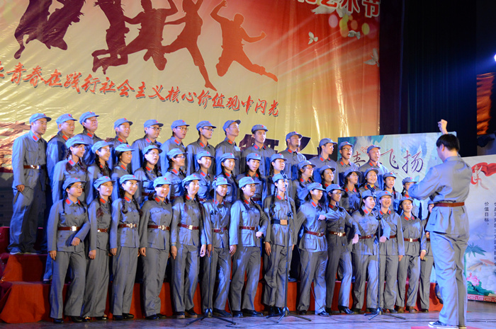 此次合唱比赛以“让青春在践行社会主义核心价值观中闪光”为主题,弘扬时代主旋律和红色革命精神,学生代表队和教师代表队演唱了《没有共产党就没有新中国》、《团结就是力量》、《游击队之歌》、《我和我的祖国》等红色经典曲目,现场歌声嘹亮,掌声阵阵,气氛热烈。