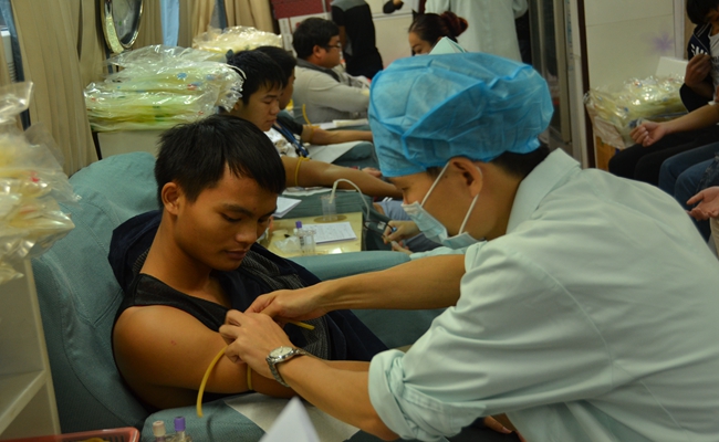 同学们积极参与爱心献血