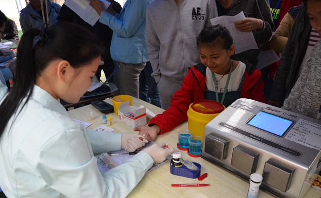 同学们排队验血