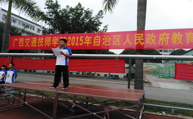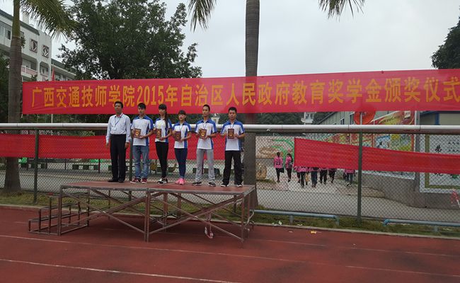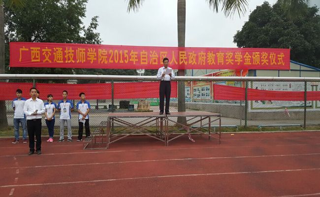 11月23日早上, 2015年度自治区人民政府教育奖学金颁奖仪式在我院足球场隆重举行。颁奖仪式由我院学生工作处副主任梁勇主持,学院院长钟修仁、学生工作处领导、全体干事、各班主任及在校班级全体学生出席会议。我院共有190名学生荣获2015年度自治区人民政府教育奖学金,每人2000元,共计38万元人民币。