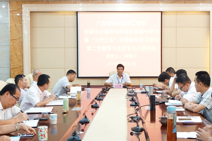 广西交通高级技工学校召开党委中心组2015年第三次集中学习暨“三严三实”专题教育学习研讨第二专题学习会