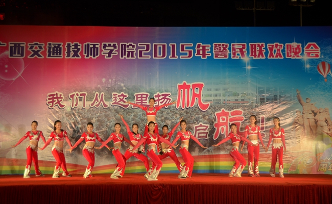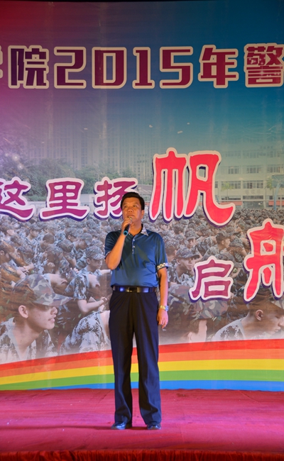 9月10日晚,我院2015年警民联欢晚会在学院足球场举办。学院钟修仁院长出席晚会并致词,广西武警总队直属支队队长覃振周、学生工作处领导、各班班主任及教官、2015级新生们观看晚会。