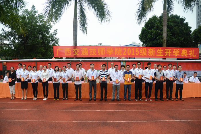 831日上午,我院在足球场隆重举行2015级新生开学典礼,欢迎邕武校区2600多名学生进入广西交通技师学院这个大家庭。我院领导班子成员以及相关部门中层参加了开学典礼。钟修仁院长在会上介绍了国家对技能大赛的重视和支持,寄语新生学习技能、努力钻研,为自己的梦想努力和拼搏。