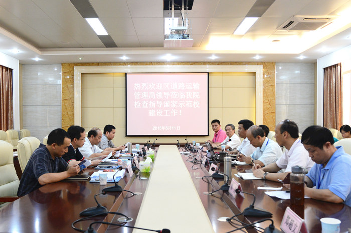 广西道路运输管理局局长黄天国、书记庞福生一行视察我院国家示范校建设工作