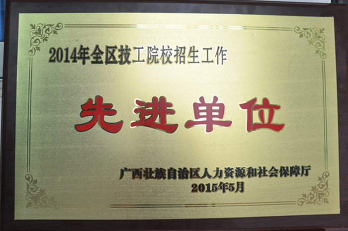 我院喜获2014年全区技工院校“招生工作先进单位”荣誉称号