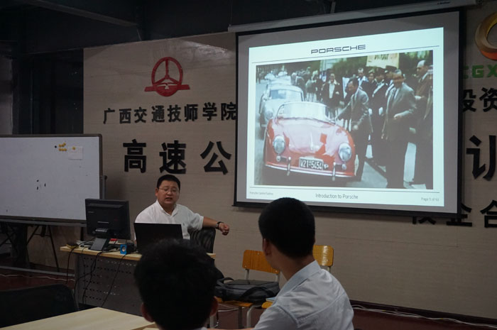 4月7日,保时捷PEAP项目非技术校园特训邀请南宁保时捷中心的售后服务经理施韵翔先生给学生做ITOP(介绍保时捷)讲座。在讲座中,学生了解到保时捷文化与品牌理念,了解到企业的用工要求,更激发了他们进入保时捷中心工作的欲望。