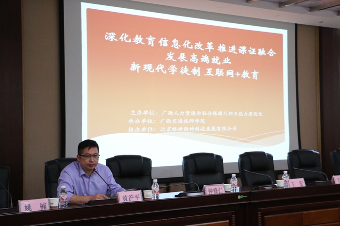 413日,为探索信息化环境下物流人才培养模式,通过校企深度融合共同促进物流专业学生高端就业服务,进一步推进广西技工院校课程改革,促进全区技工院校物流管理专业建设,由自治区人力资源和社会保障厅职业能力建设处主办,北京络捷斯特科技发展有限公司协办,我院具体承办的“深化教育信息化改革、推进课证融合、发展高端就业主题论坛”成功举行。广西石化高级技工学校、广西南宁高级技工学校等来自全区26所技工院校的骨干教师参加了此次论坛。