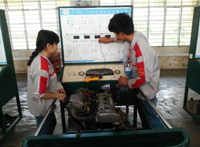 学生正在进行排除发动机故障训练