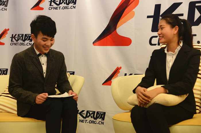 “这是我第二次参加这个比赛,第一次比赛的时候我的发音还带着严重的口音,经过不断的努力的练习,我纠正了发音,这一回我再次站上这个舞台挑战自我。学校电视台主持人挑战赛是一个大舞台,这个舞台上我能挑战和展现自我,从比赛中学习到很多的知识,结识新朋友,让我变得更加自信!”参赛选手徐金说。