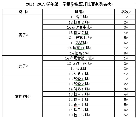 12月11日晚上,历时2个多月的广西交通技师学院2014-2015学年第一学期学生篮球赛终于落下帷幕。11日晚上的篮球赛中洋溢着一片欢乐的氛围,赛场上各位队员本着“友谊第一、比赛第二”的精神,奋力拼搏,交战双方你来我往。场下的观众喝彩声,也是一声盖过一声,观众们的呐喊声从未间断,这使得队员们不仅激情四射而且从容镇定。随着最后一声长哨响起,比赛在欢呼声中结束了。最终13高中班凭着他们精湛的技术以及高度的默契,以61:51的比分摘下了男子组冠军,12检高2班获得了亚军。