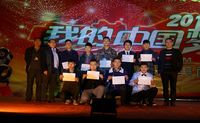 决赛当晚,每位参赛选手都尽情地展示了自己的才艺,用动听的歌声和不俗的舞台表现,诠释着青春的主题。整个比赛过程气氛热烈,激情挥洒,掌声和喝彩声经久不息,一次次将整个会场的气氛推向高潮。经过激烈的角逐,最终来自13级检中三班的李俊恒同学以一首《爱拼才会赢》获得了全场冠军;14检中五班韦政、玉万同学合唱《兄弟抱一下》获得了二等奖;14检中一班杨开同学《随缘》获得了三等奖;13驾修一班林益博同学、14装饰二班夏凡同学、14检中四班叶桂宏同学、13检中三班禤达懿同学、14检中二班冯绍文同学分别获得了优秀奖。