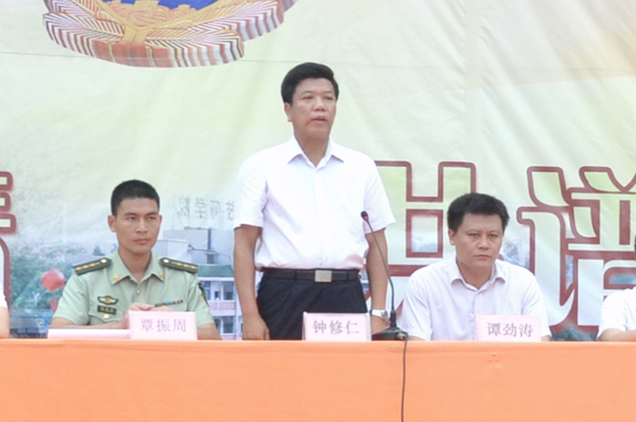 学院院长钟修仁宣布检阅仪式开始