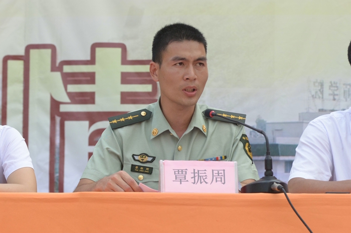 广西武警一支队队长覃振周发表新生军训总结讲话