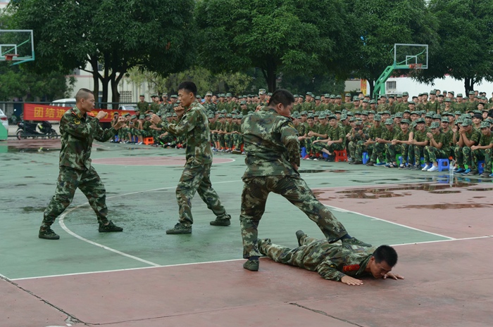 军训教官展示擒拿术