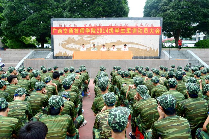 9月10日上午,我院在灯光球场举行2014级新生军训动员大会,学院钟修仁院长、武警一支队首长覃振周等领导对新生作军训动员讲话。