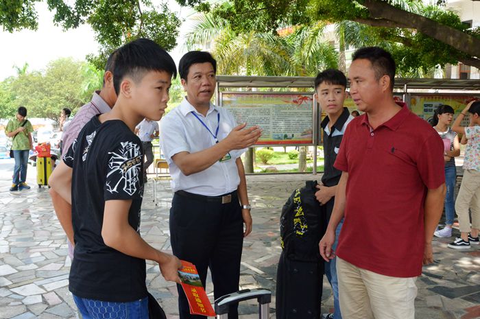 报读了汽车检测与维修专业的新生张栋来自新疆,“我和家人对比过许多学校,我也从自己的兴趣出发,经过认真考虑最终选择了广西交通技师学院。来到这里,看到美丽的校园环境和热情的老师和学姐学长们,心里真的很高兴,我很喜欢这里!希望在今后在这里好好学习本领,不辜负家人。”站在一旁的张爸爸也微笑着点头。