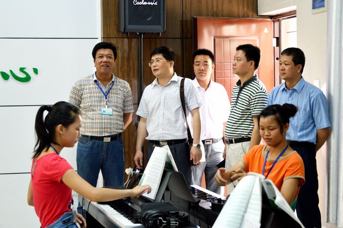 交流会后,广西石化高级技工学校一行参观了我院新成立的爱心社活动基地、声乐实训室、信息与监控中心以及多功能演播厅、形体训练室、大师工作室等教育教学活动基地。来访兄弟院校对我院的学生德育培养和学生社团建设情况等表示称赞。广西石化高级技工学校莫创才副校长表示,广西石化高级技工学校今后还将分批组织相关人员到我院就招生就业和教育教学等方面展开互动交流,借鉴相关方面的成功经验,双方共同进步和发展。