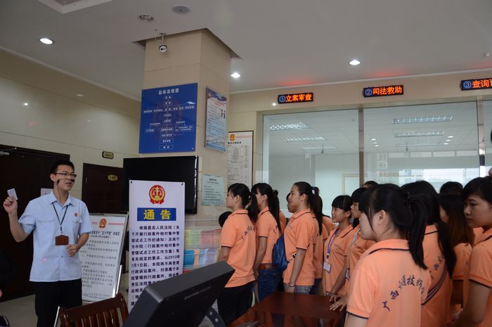 法院工作人员首先引导学员参观了诉讼服务大厅等法制教育场所,并对法院历史发展沿革、廉政文化建设、法制建设等进行了讲解,为接下来的庭审做好了知识准备。