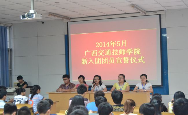 5月19日下午,我院团委组织2014年第一批新团员在阶梯教室举行了入团宣誓仪式。学院团委书记李姜春出席了仪式,仪式由团委副书记甘麒燕主持。