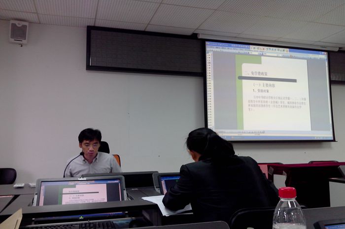 为切实加强和规范学生资助管理工作,特别是强化对全国技工院校电子注册和统计信息管理系统的使用,2014年全国技工院校电子注册和统计信息管理系统培训会议于4月23日在广西广播电视大学远教大厦405教室召开,我院具体负责学生资助工作的李光红、陆露、韦婷等3位教师与来自广西其他区直技工院校的40名从事资助管理工作的老师参加了此次培训。会议由广西技工院校学生资助管理工作办公室副主任陈家和主持。