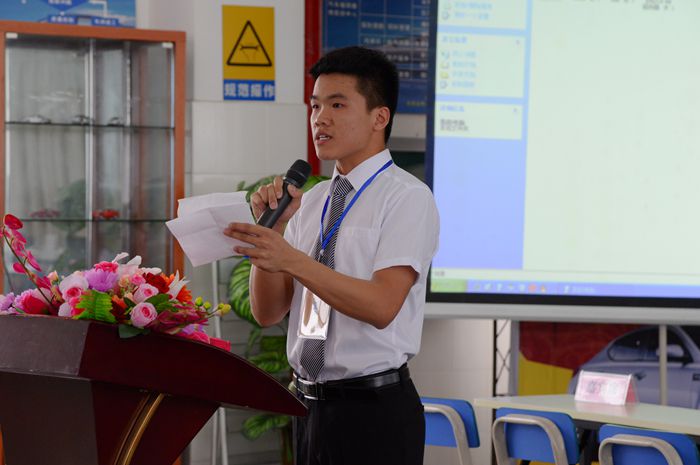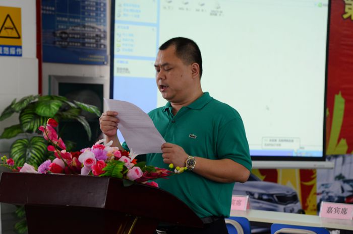 企业代表南宁金科顺车保设备有限公司荣宇峰总经理希望以南宁金科顺专业的汽车技术服务于我区职教事业,通过与学校开展深入的校企合作和制定良好的人才培养模式,进一步提高相关专业人才的技能水平。