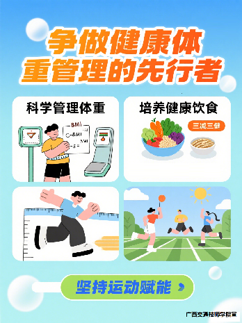 健康,是生命大厦的基石,承载着我们对幸福生活的向往,更是我们实现梦想、奔赴未来的坚实保障。为积极响应《自治区爱卫会关于将健康体重管理行动等3个行动纳入健康广西行动的通知》(桂爱卫会〔2025〕2号)精神,推动健康理念全面融入校园生活,并辐射带动周边乡村社区,我们诚挚倡议每一位师生携手并肩,争当健康校园与健康乡村的建设者、推动者和实践者。为此,我们向全院师生员工发出如下倡议: